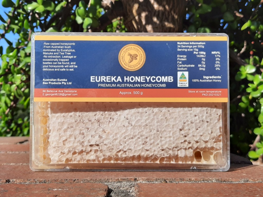 Our honeycomb is from the coastal NSW bush rich in Eucalyptus, Manuka and Tea Tree in Denistone, Millfield, and Awaba. The raw honey retains pollen, bee wax and propolis beneficial to the human body.